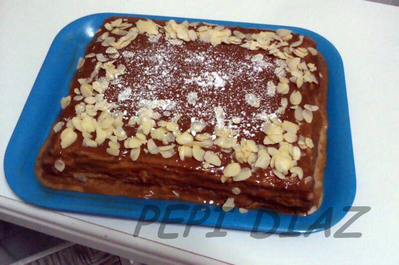 más flexible a la hora de cubrir la tarta. Seguidamente lo cubrimos todo con el dulce leche y lo adornamos al gusto ,yo lo adorne con almendras laminadas.