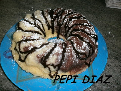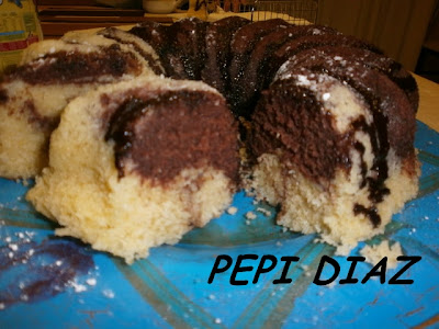 Con la otra mitad hacemos lo mismo,pero esta ya no lleva chocolate.El molde que vallamos a usar se unta bien de mantequilla,y vertemos la mezcla las dos al mismo tiempo una en cada lado del molde,bajamos el horno a unos 180 grados y lo entramos,lo dejaremos unos 30 minutos o mas según el horno,pincharlo con una aguja de larga de pinchos y si sale limpia es por que esta echo el bizcocho.Desmontarle cuando este frío y adornarle a l gusto.