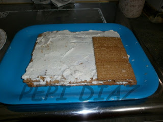 base de galletas. Luego volvemos a mojar las galletas en la leche y